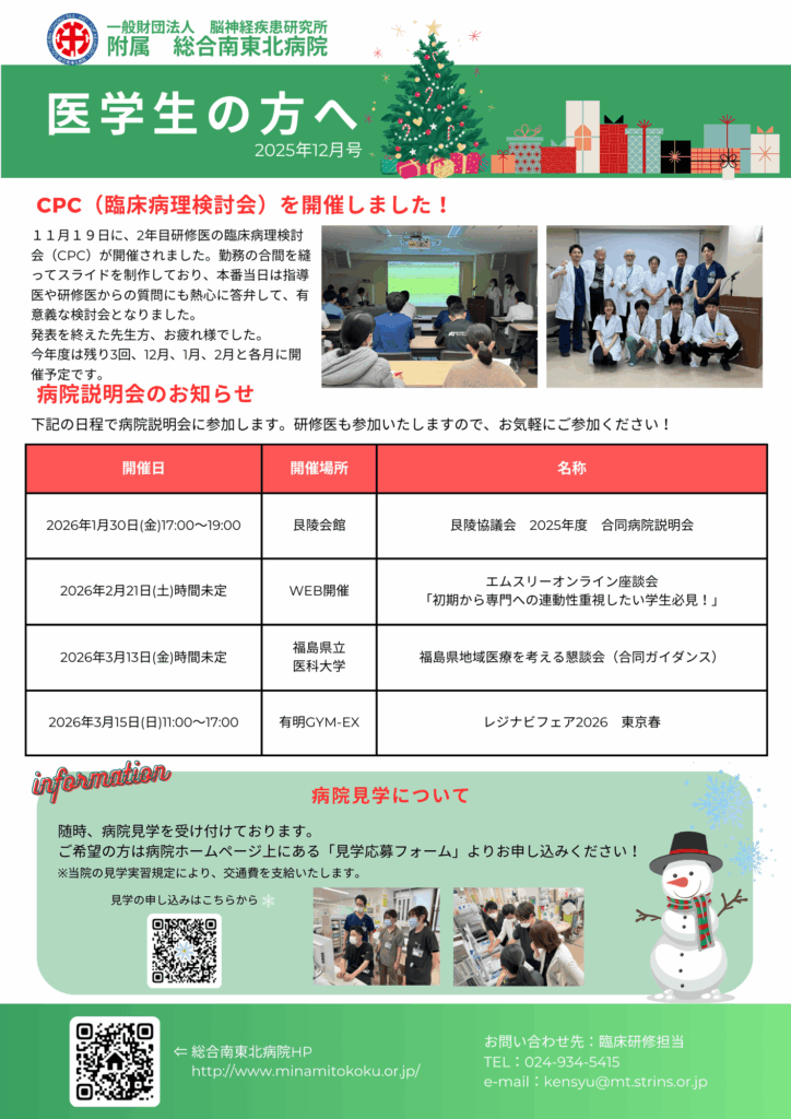 毎月、医学生の皆さんへ病院通信「医学生の方へ」を発行しています。
